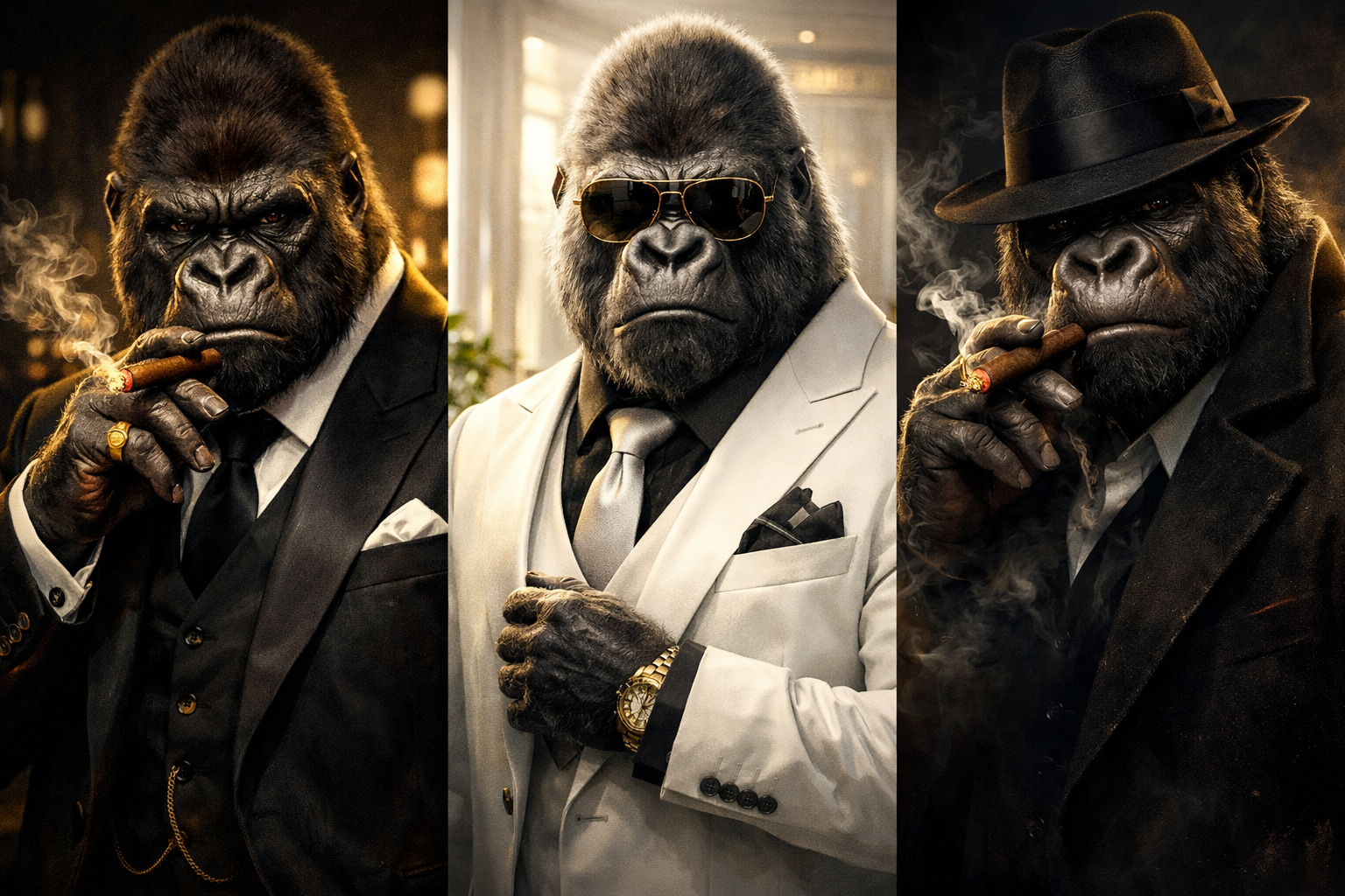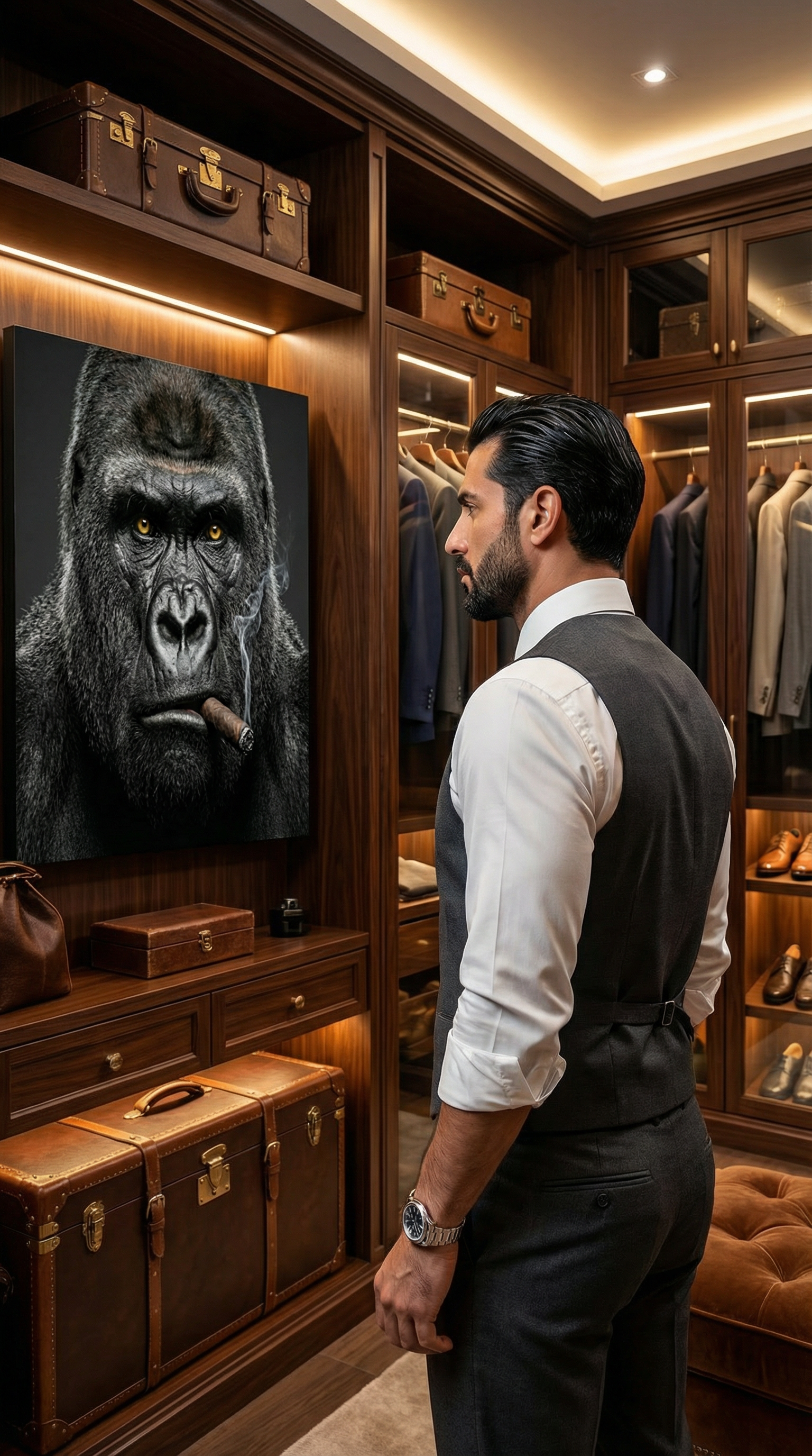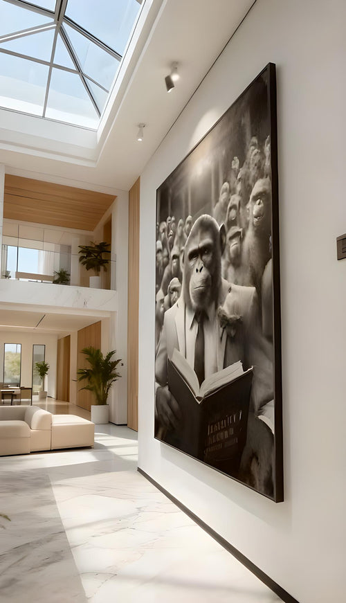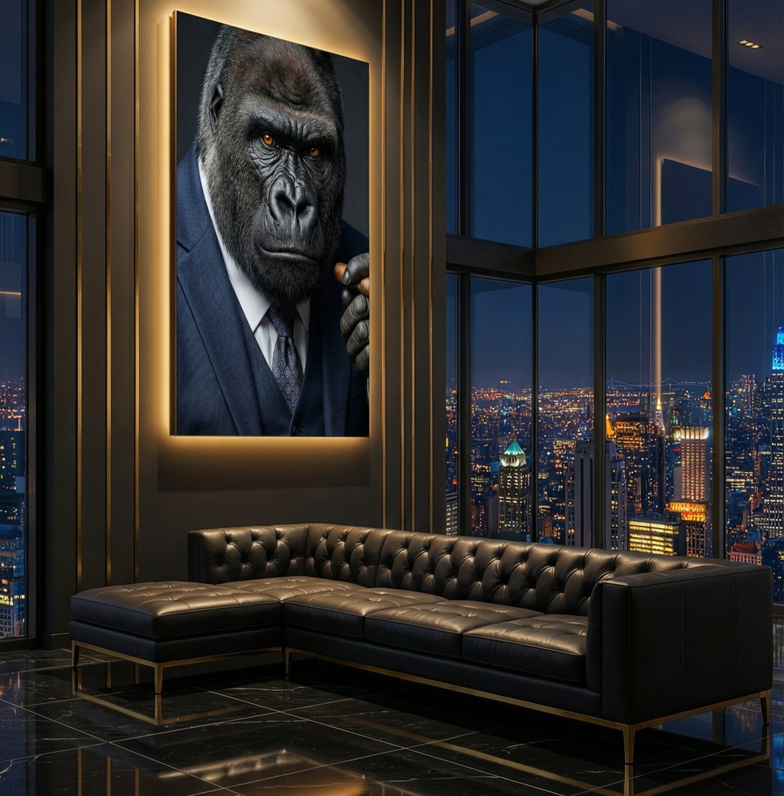 décoration murale luxe, tableau gorille costume cigare, art moderne premium, décoration intérieure haut de gamme.