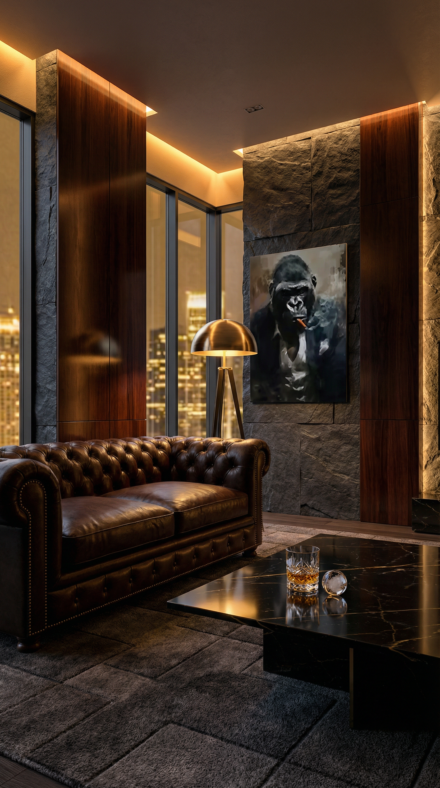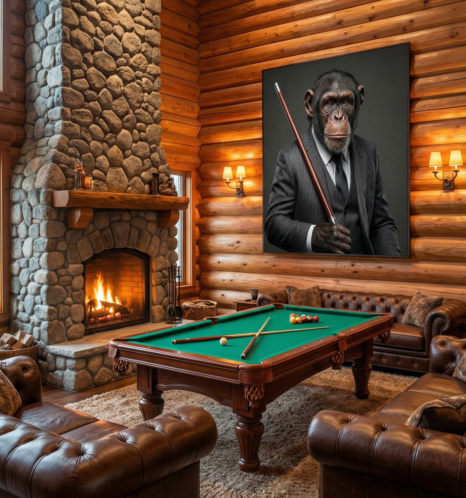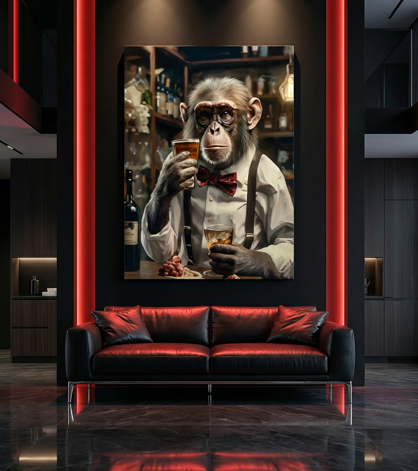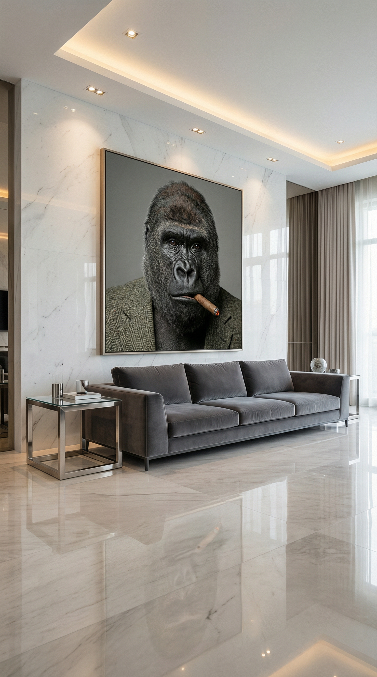 décoration murale luxe, tableau gorille costume cigare, art moderne premium, décoration intérieure haut de gamme.